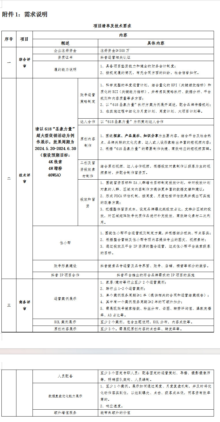 為全面貫徹“擴口碑、提升量、優品質、促轉化”的方針,打通全鏈路用戶生命周期,圣象決定對圣象品牌數字營銷2024年度運營服務項目(項目名稱)進行公開招標,特邀請有興趣的潛在投標人(以下簡稱申請人)提出資格預審申請。