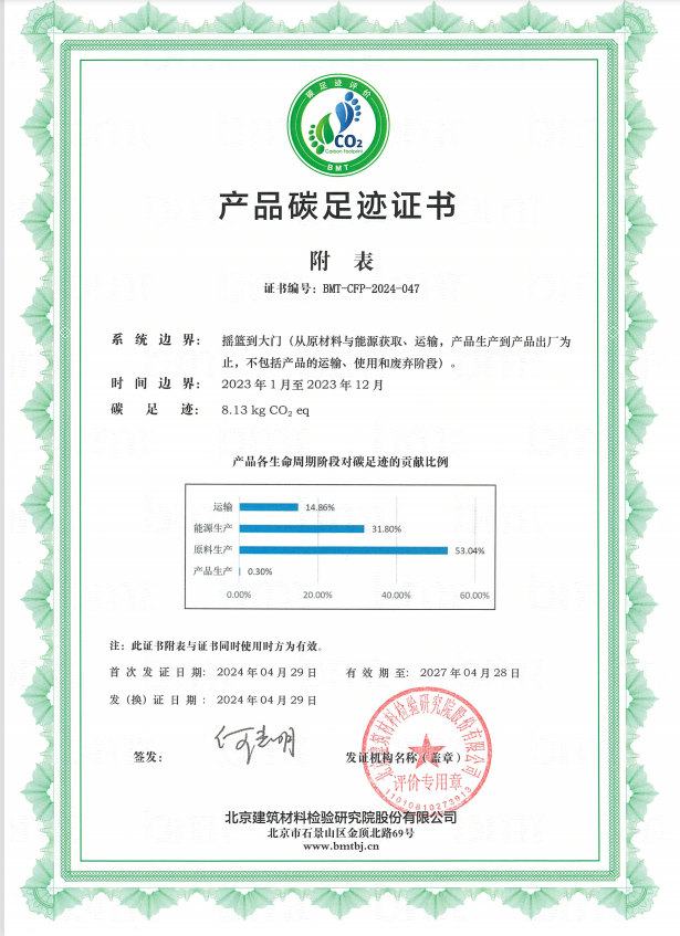 圣象地板(句容)有限公司統計期2023年1月1日至2023年12月31日,系統邊界:搖籃到大門,多層實木復合地板產品各過程對碳足跡的貢獻比例:在系統邊界內,原材料生產對全球變暖環境影響的貢獻最大,約為53.04%,其次是能源生產對全球變暖環境影響貢獻占比約為31.80%,運輸對全球變暖環境影響貢獻占比約為14.86%,產品生產對全球變暖環境影響的貢獻占比最小,占比約為0.30%。
