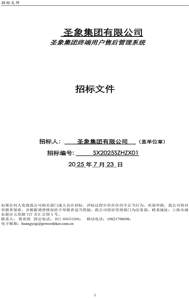 附件:圣象集團終端用戶售后管理系統招標文件-0723