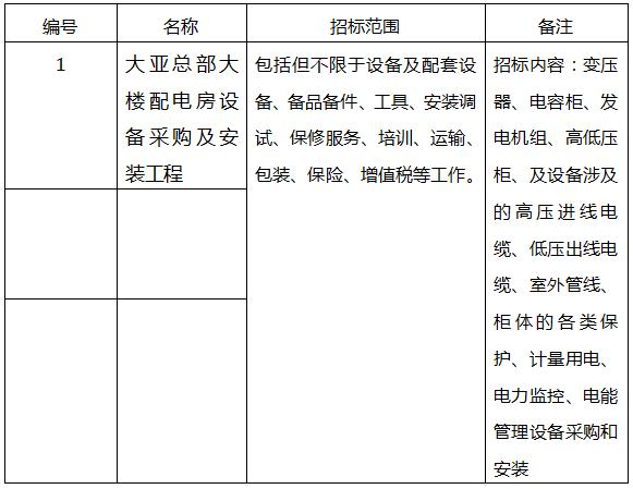 大亞科技集團有限公司總部大樓配電房設備采購及安裝工程 招標公告