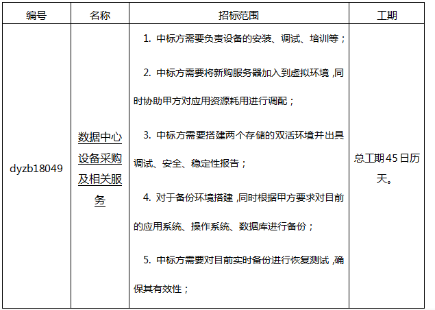 數據中心設備采購及相關服務招標公告