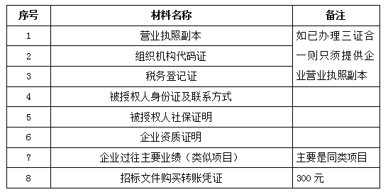 2、 凡有意向參加投標者,請在上述期間內按下表提供報名資料,相關證明文件的原件如無法提供原件則提供復印件加蓋公司公章,投標人須將上述資料的掃描件發(fā)郵件至招標聯(lián)系人處進行報名。
