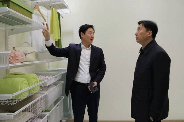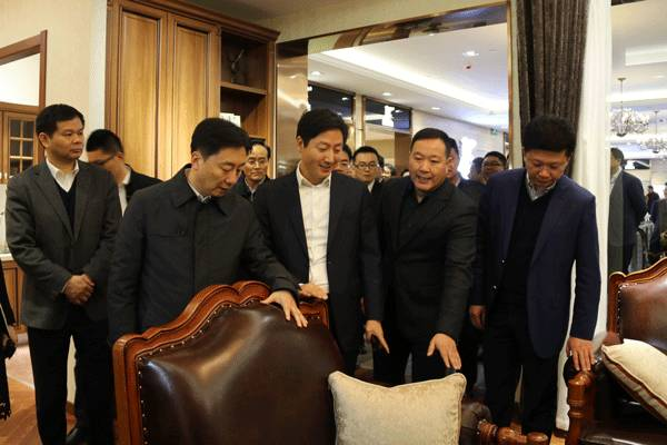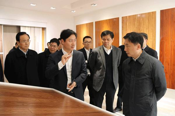 陳曉龍董事長向夏書記及各位領導介紹了集團的大家居戰略和品牌發展戰略,之后由集團品牌與公共事務部總經理鄭睿喆帶領大家一一參觀圣象大家居的各品類展廳及定制家居情景展示廳。市委領導一行逐個參觀了各分品類展廳,在2017年即將上市的幾款新品前駐足并作詳細了解,對圣象大家居的未來發展方向做了深入探討。