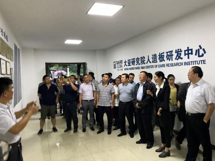 2017年9月24日下午,在蒙蒙細雨中,廣西壯族自治區林業廳原廳長、廣西林業產業行業協會理事長李可夫一行30余人來到大亞人造板集團有限公司進行調研指導。大亞人造板集團有限公司副總裁仲宏年帶領考察調研團先后深入大亞人造板研發中心、圣象實木生產車間、大亞人造板丹陽工廠、大亞圣象家居體驗館等地進行實地參觀交流。
