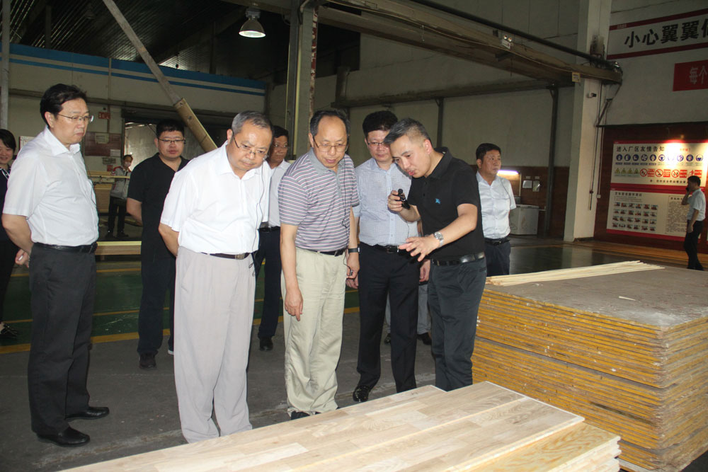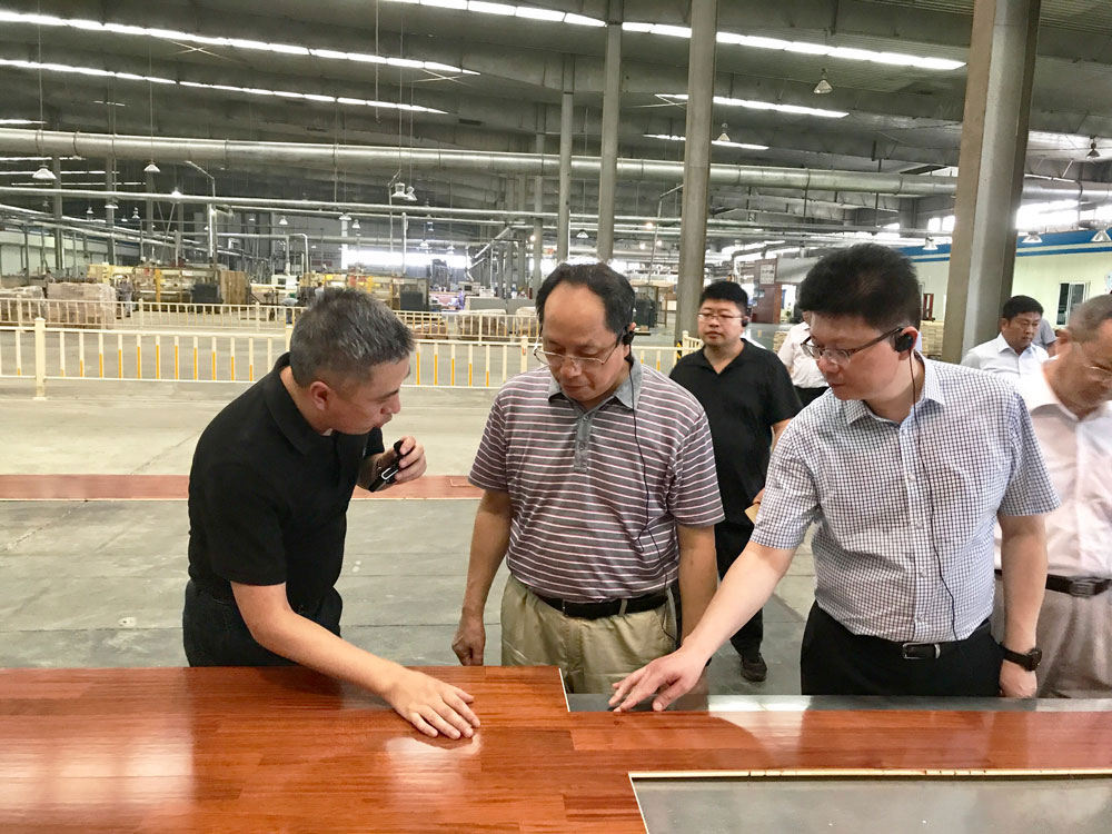 在集團(tuán)副總裁眭敏、人造板集團(tuán)執(zhí)行總裁程杰、副總裁仲宏年、圣象集團(tuán)副總裁劉海濤等陪同下,劉拓司長(zhǎng)一行饒有興致地參觀了大亞人造板丹陽工廠、圣象實(shí)木地板工廠和圣象家居體驗(yàn)館。集團(tuán)董事局主席、總裁陳曉龍親切接待來賓并就大亞集團(tuán)產(chǎn)業(yè)發(fā)展現(xiàn)狀、存在主要問題及對(duì)林業(yè)政策相關(guān)建議作了專題匯報(bào)。