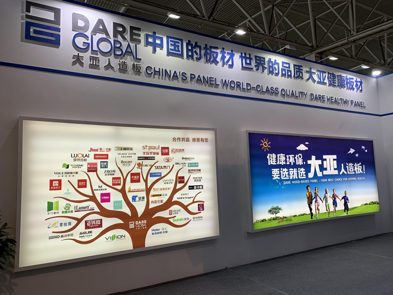大亞人造板現(xiàn)場展出了無醛刨花板、無醛地板基材、無醛鏤銑板、無醛家具纖維板、高防潮刨花板、防潮地板基材、防潮門板、防霉纖維板、防霉刨花板、低吸漲纖維板、低吸漲刨花板、阻燃纖維板、電子線路墊板、鞋跟板等代表人造板行業(yè)先進(jìn)技術(shù)水平的產(chǎn)品,吸引了眾多客戶前來觀摩洽談。