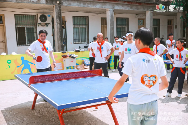 十周年之際,綠校園紅安站對圣象來說更是一種激勵,紅安永遠紅,圣象永遠新!圣象將貫徹新發展理念,企業唯有可持續發展才能積極承擔社會責任!圣象將加快構建新發展格局,從地板的產品提供者到生活空間的方案服務商,構建全新的相互協同、齊頭并進的六大業務線!圣象將以契合時代發展的新動能,攜手愛心人士共同努力,讓更多校園擁有更美好的學習生活環境,把更美好的關愛留給小朋友們,將真善美傳遍祖國大地!用愛承載·美好生活!