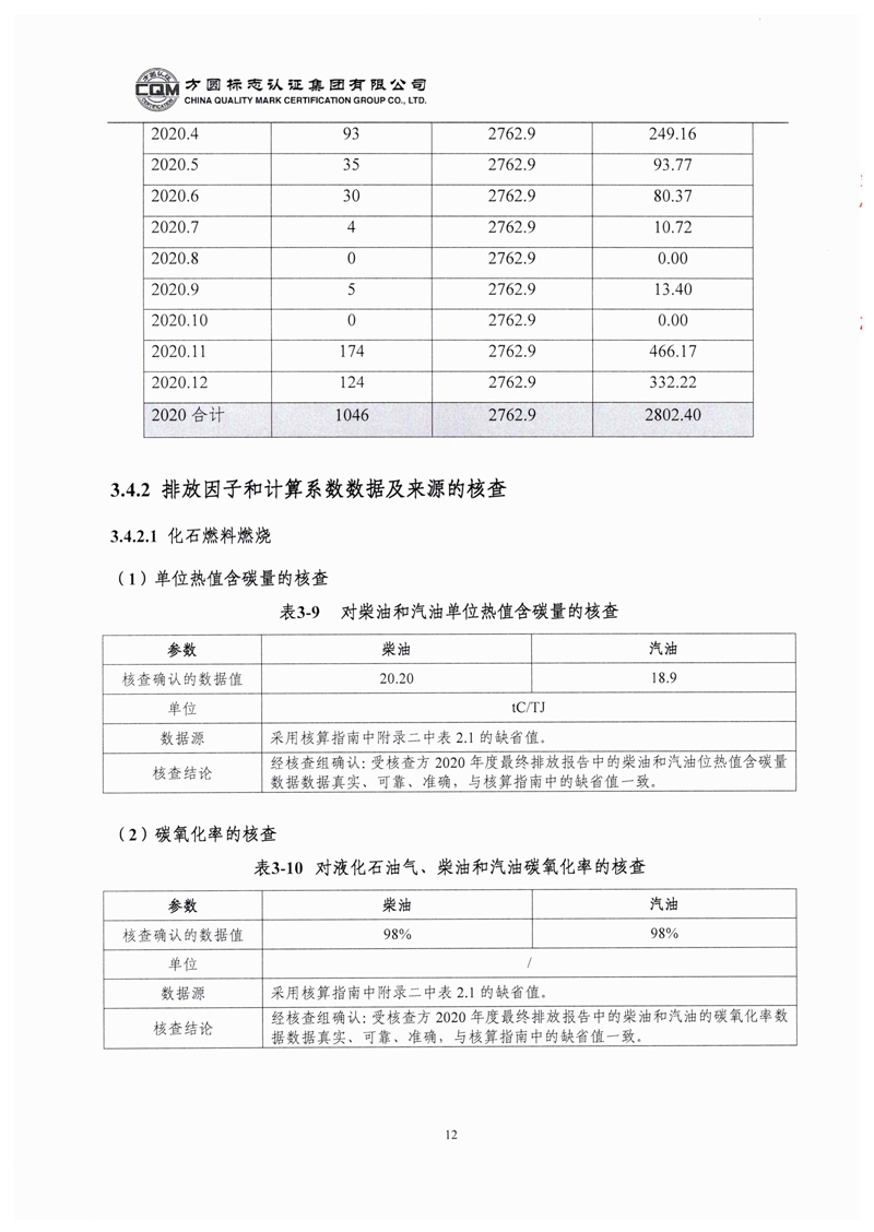大亞人造板集團有限公司2020年度溫室氣體排放核查報告自主公示