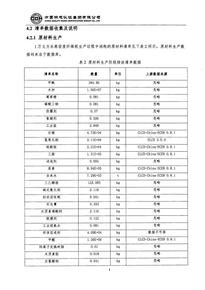 大亞人造板集團有限公司中高密度纖維板產品產品碳足跡評價報告自主公示
