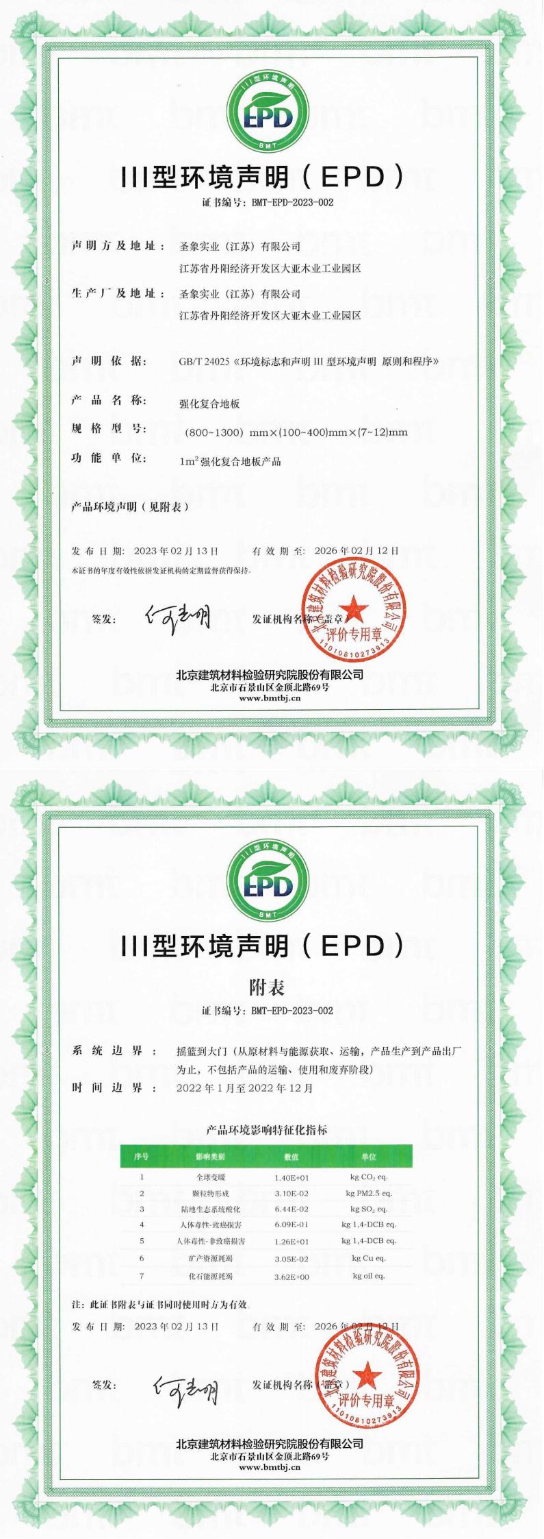 圣象實業(江蘇)有限公司III型環境聲明(EPD)